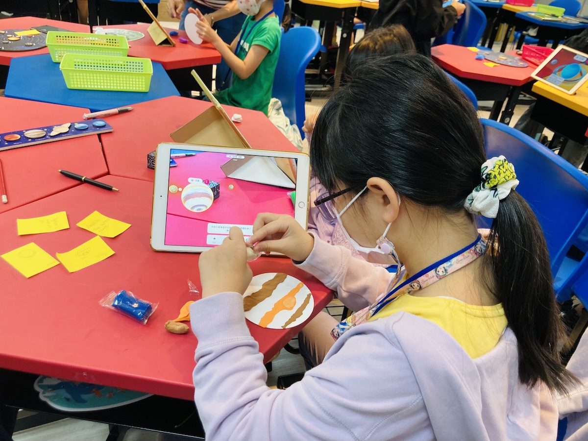 未來視窗課程結合科技與雙語,其中「用 AR 探索九大行星」不僅是運用科技,也融入雙語課堂的教學方式,讓學生透過 AR 有一個很不一樣的課程體驗;而運用 CoSpaces App 融入課程,讓學生可以體驗 VR 虛擬實境,激發學生的創意及學習興趣。